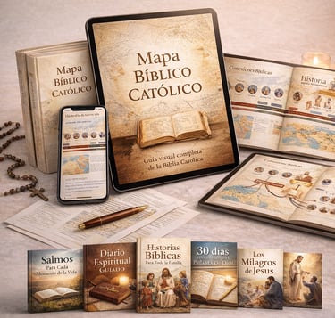 Es una guía visual y educativa que te guía a través de toda la Biblia, con mapas claros, conexiones entre los libros y explicaciones sencillas, fieles a la tradición de la Iglesia. Creado para transformar la lectura de las Escrituras en una experiencia de claridad, comprensión y seguridad espiritual.