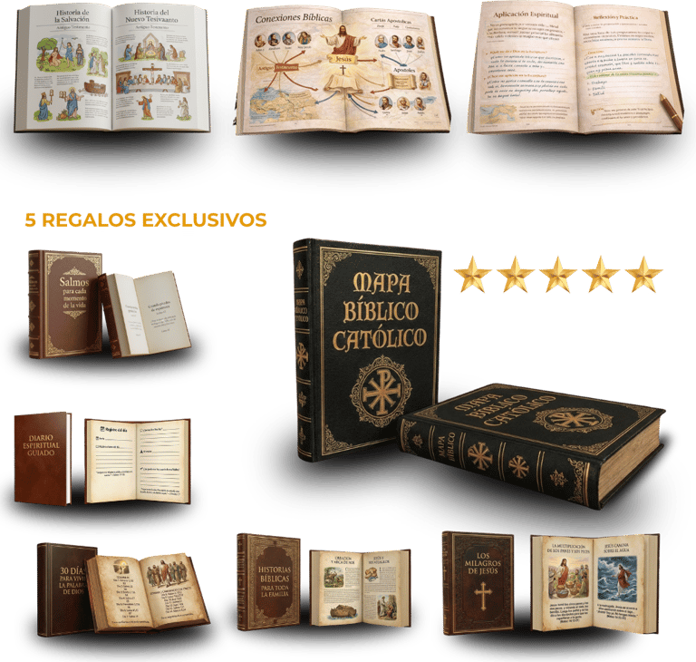Al adquirir Mapa Bíblico Católico hoy, recibirás totalmente GRATIS estos 5 regalos exclusivos que complementarán tu estudio y crecimiento espiritual: